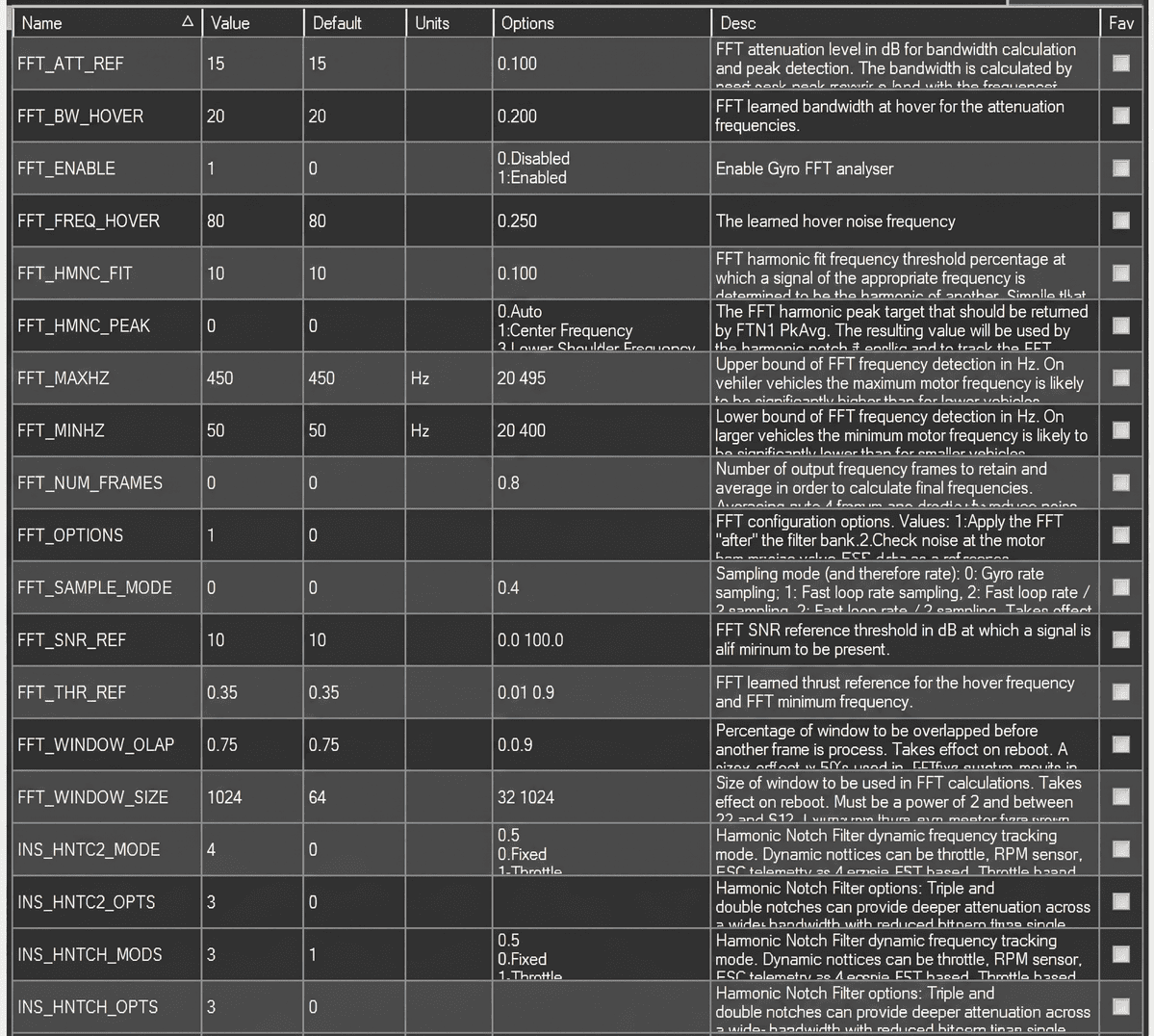INS_GYRO_FILTERвConfig → Full Parameter List. - Повышайте значение на один шаг за раз (например, с 40 Гц до 50 Гц).