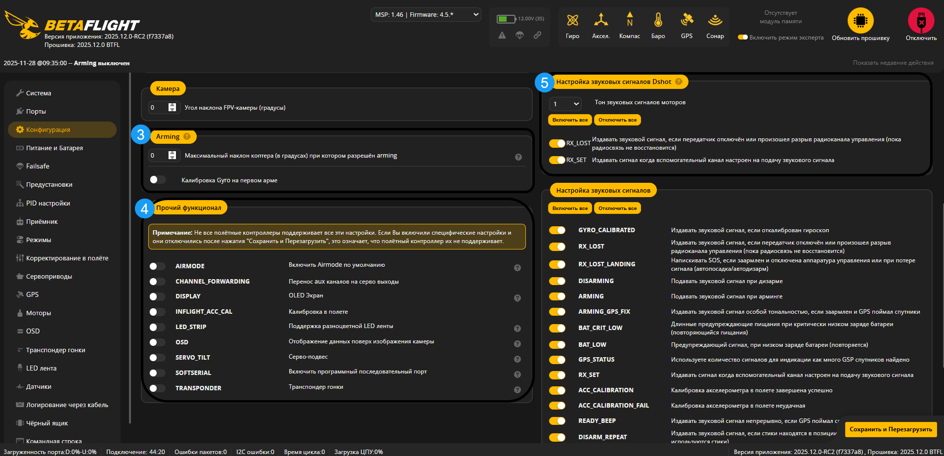 Настройка прошивки Betaflight 4.5.1 для FPV дронов (2025.12)
