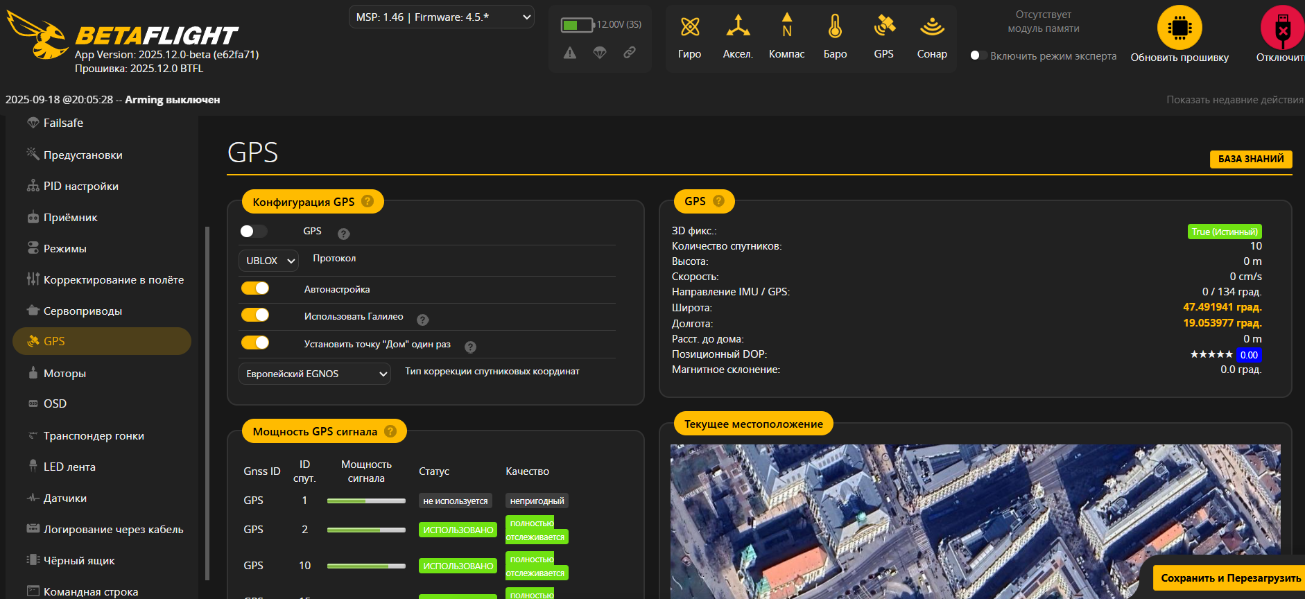 Автонастройка (Auto Config) | Автоматически настраивает параметры GPS; рекомендуется оставлять эту функцию включенной. Требуется Betaflight 4.5 или новее для GPS-модулей M10. |